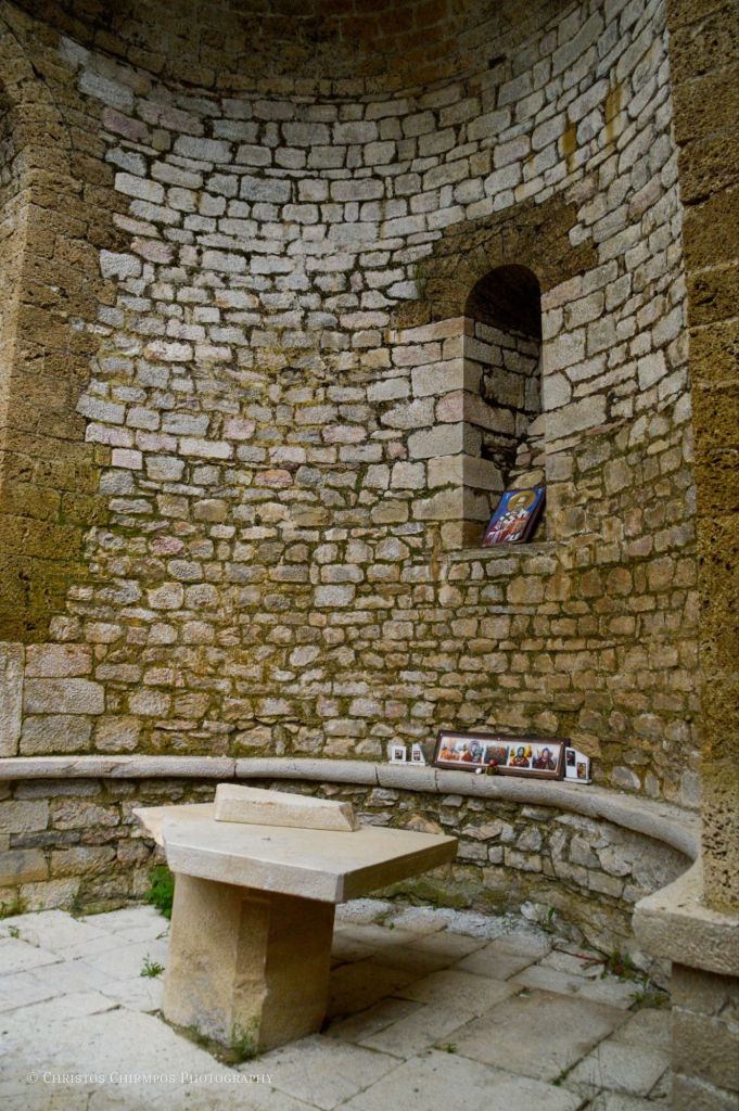 Στην είσοδο υπάρχει η εξής επιγραφή: «Εκαλλιεργήθη ο Ναός του Αγίου και Ενδόξου Μεγαλομάρτυρος Παντελεήμονος εκ Συνδρομής Κύρου Αλεξίου Κομνηνού και Υιού της Πορφυρογέννητης Κυράς Θεοδώρας Μηνί Σεπτεμβρίω του Ετους… (1164) Ηγουμένου Ιωαννικίου».