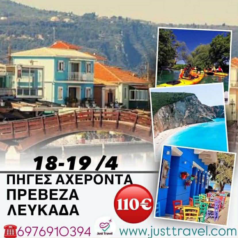 Ένα διήμερο γεμάτο φύση και δραστηριότητες στον μυθικό Αχέροντα .Ατελείωτες βόλτες στον πεζόδρομο της Πρέβεζας με το Βενετσιάνικο ρολόι στη Μητρόπολη της πόλης ,το ιστορικό κέντρο με τα όμορφα παραδοσιακά κτίρια και τις ντόπιες λιχουδιές στα γραφικά ταβερνάκια . Και στην καραϊβική της Ελλάδας την Λευκάδα ,το σμαραγδένιο νησί με τις ατελείωτες ομορφιές και τη ζεστή φιλοξενία.